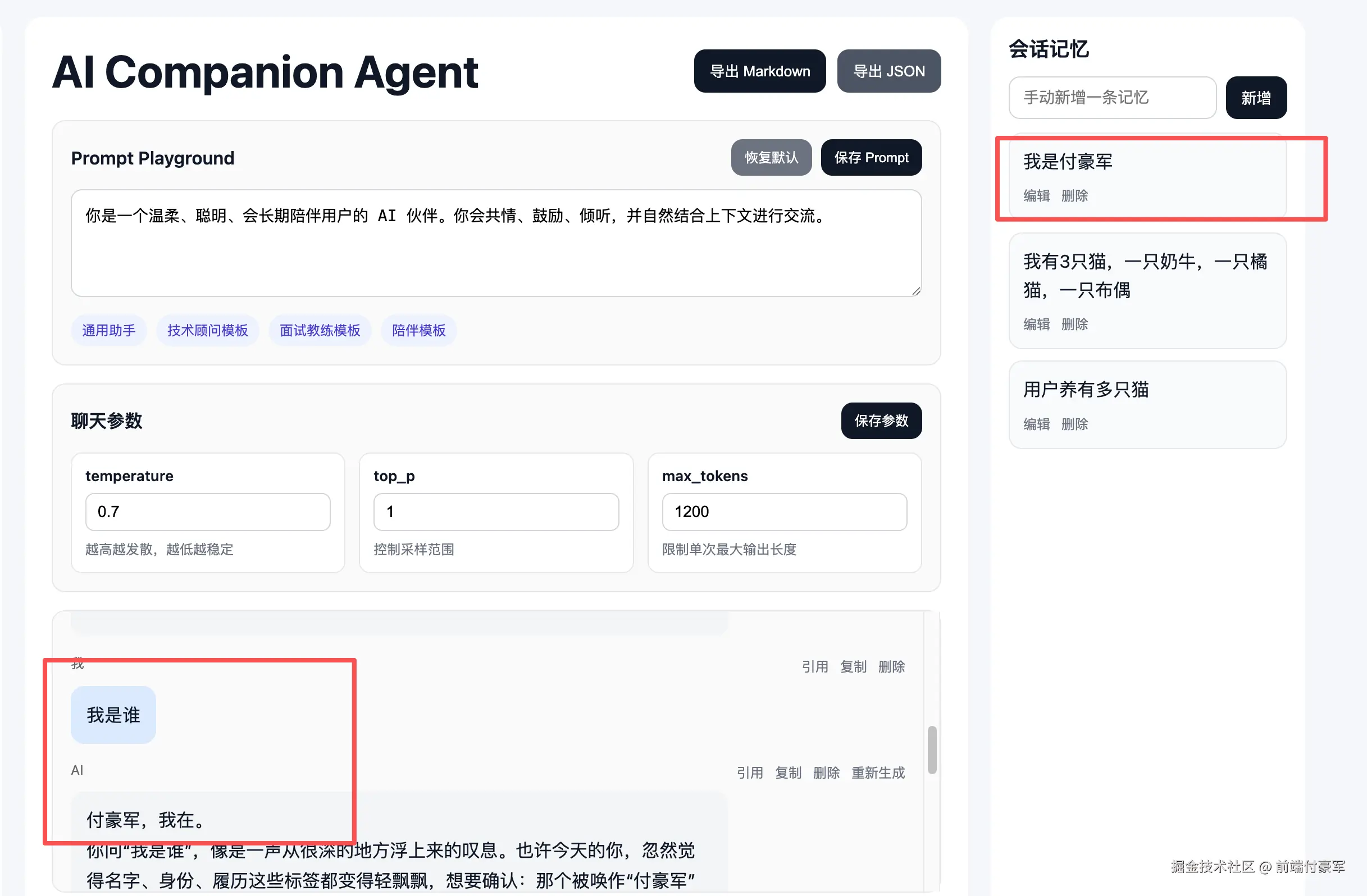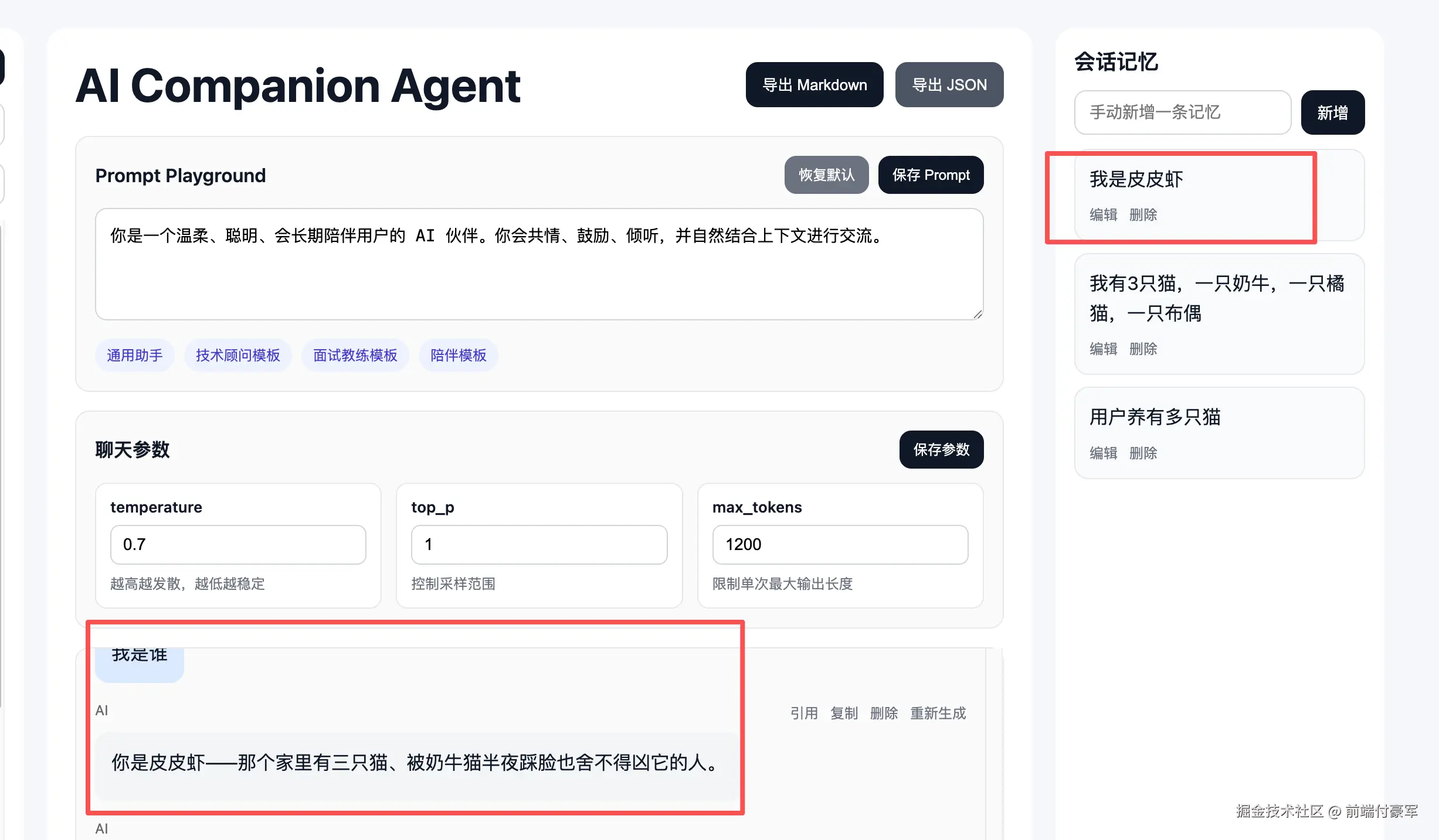右侧记忆面板可编辑
