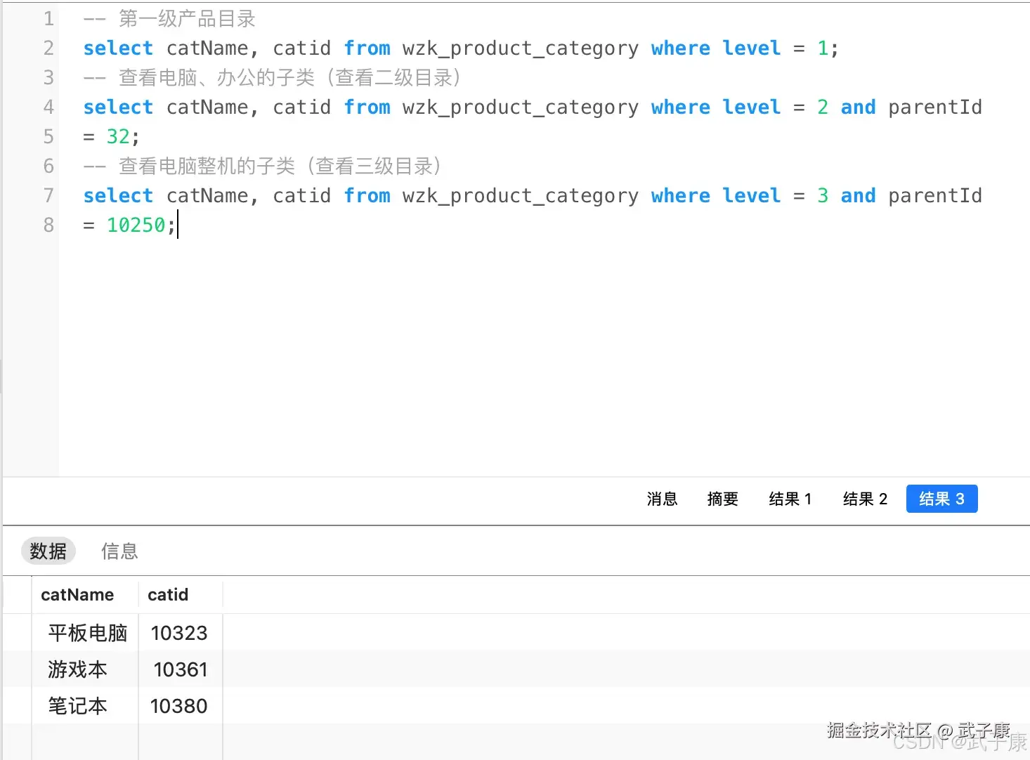 select catName, catid from wzk_product_category where level = 3 and parentId