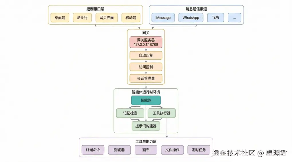 外界各个应用、服务、IM 如何通知引擎部分让 Agent 开始干活? 而引擎部分又如何告知外界 Agent 处理的结果? 而它们之间又是怎么鉴权的? 怎么通信的? 这都是网关层进行控制的。