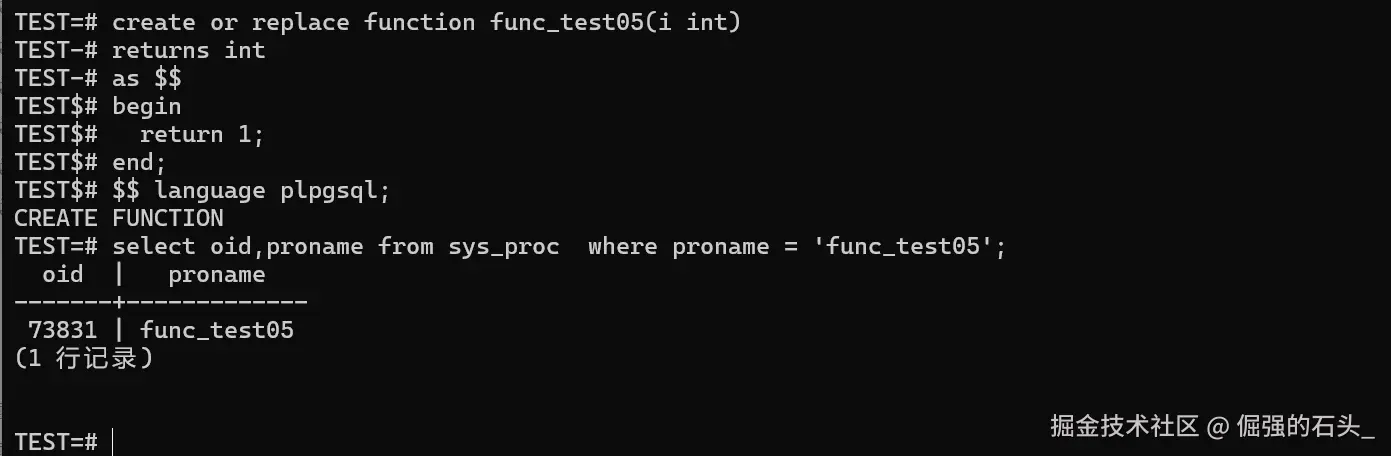 ---创建一个自定义函数,查看其在sys_proc 中的OID