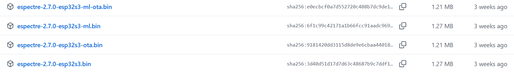 | 正式部署、高精准检测 + 远程升级、空间充足 | espectre-2.7.0-esp32s3-ml-ota.bin (ML+OTA 全能版) |