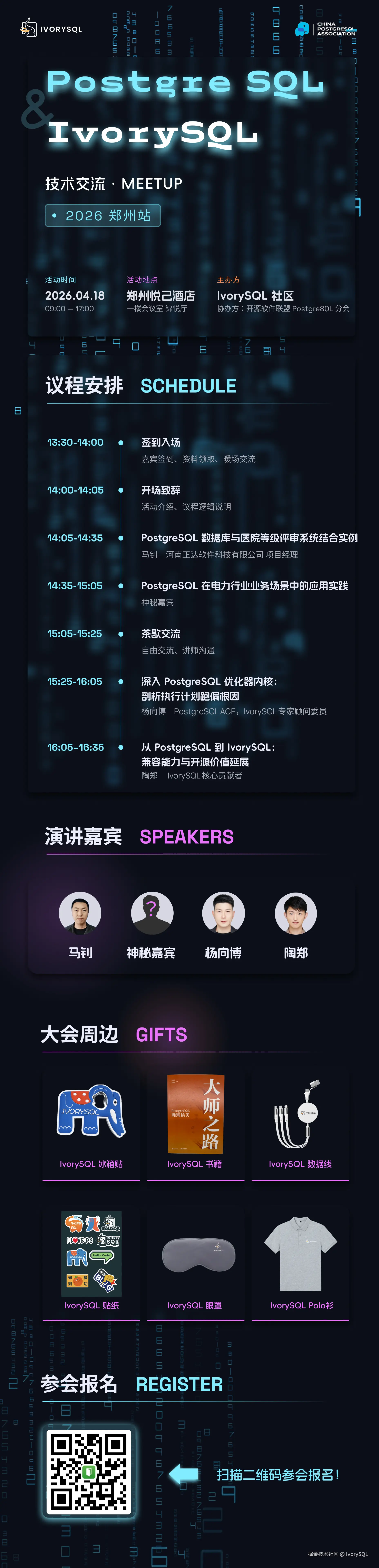 📌 活动主题:PostgreSQL & IvorySQL 技术交流 Meetup・郑州站