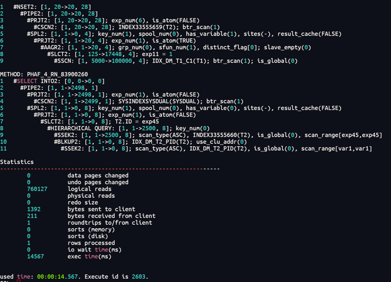 这里语句意思是每次主查询的id传入到标量子查询中求出其层次查询中相关的id,再去求其文件数据量。因此每次都要一次一次作为变量进行层次查询再统计文件数据量,因此我会思考能否一次性处理,层次查询关系能否先求其根级(即其顶头上司)?文件能否先分类统计,然后二者之间再关联统计?答案是可以的。