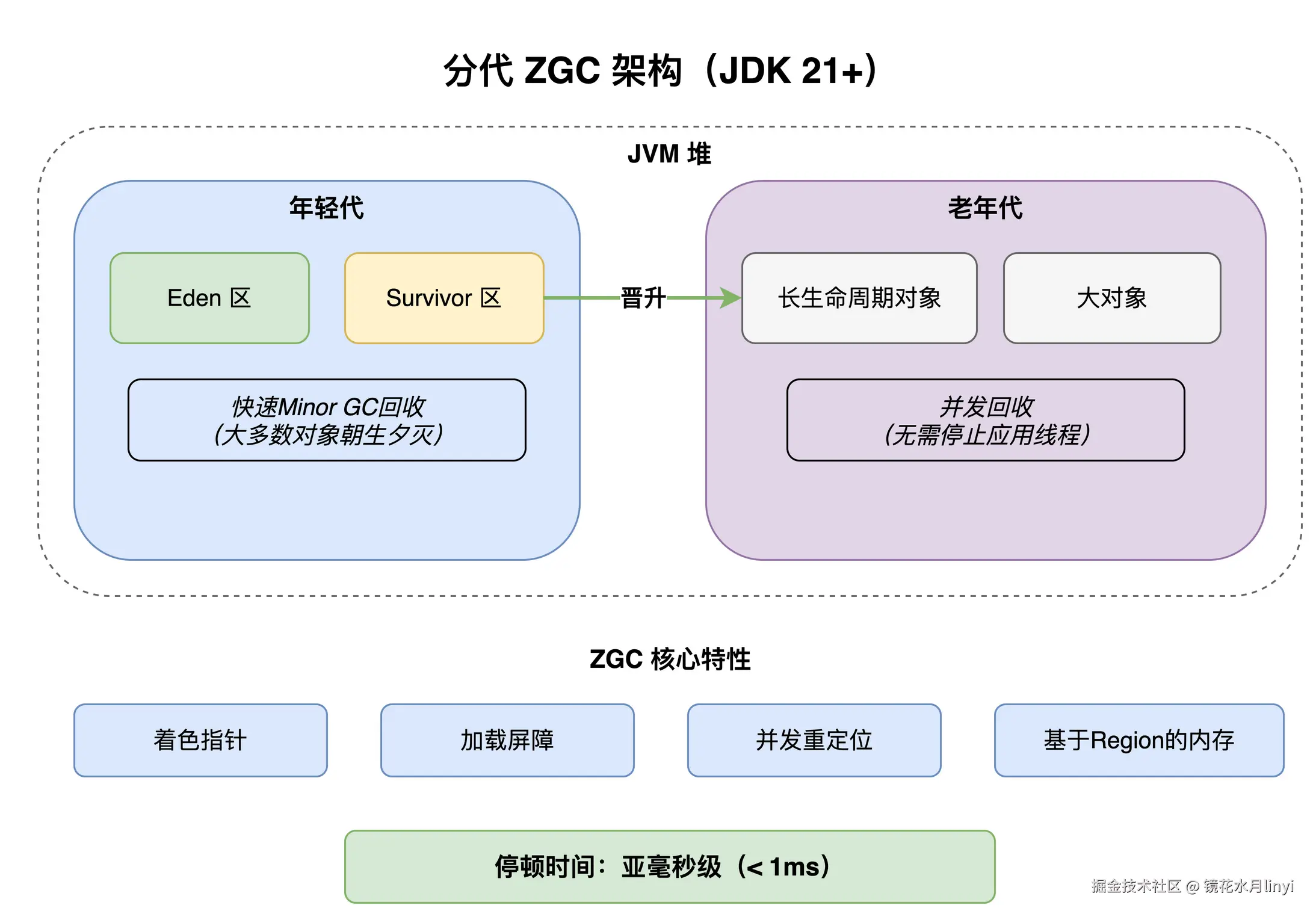 | 需要亚毫秒 GC 停顿 | 不行 | ZGC 可选 | 推荐(分代 ZGC) | 推荐 |