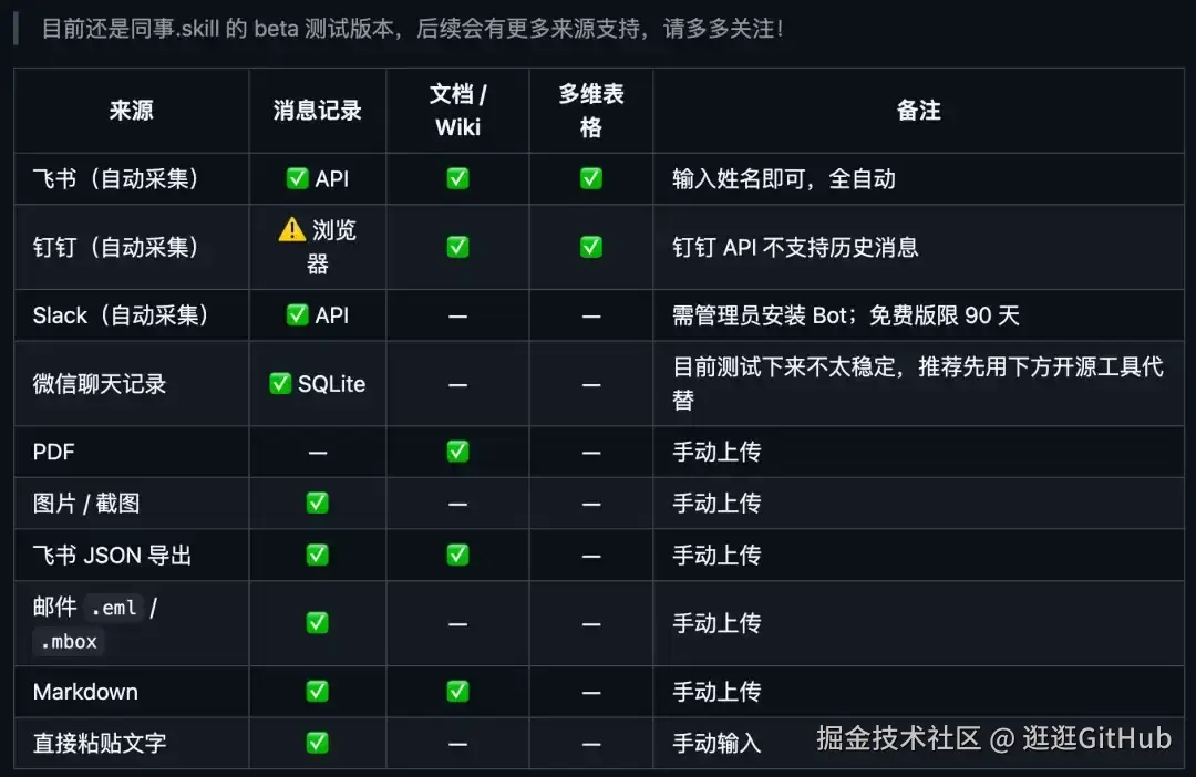 说白了就是把一个同事在各个平台上留下的痕迹全部扒下来,喂给 AI 去分析和学习。