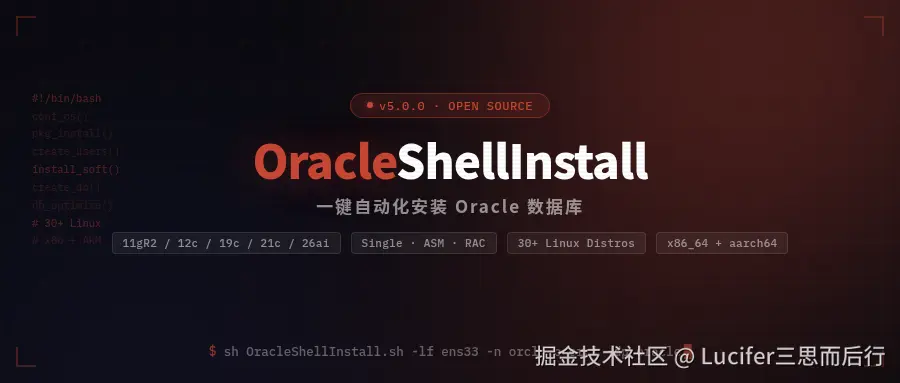 手动安装过 Oracle 数据库的人都知道,这活儿有多繁琐:配内核参数、装依赖包、建用户组、设环境变量、静默安装、建库、建监听......步骤多到怀疑人生,稍有不慎就得从头排查。