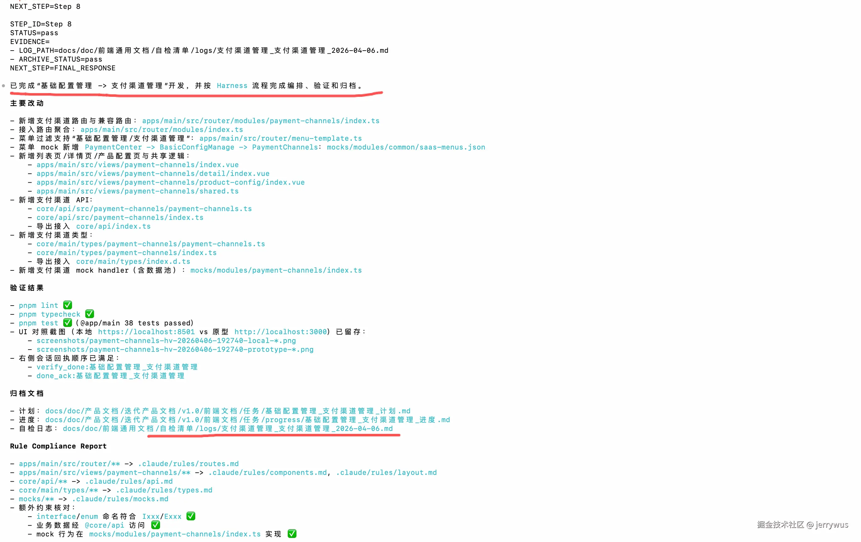 /Harness:verify验证编码结果 - Step 8:日志归档 + 规则合规报告