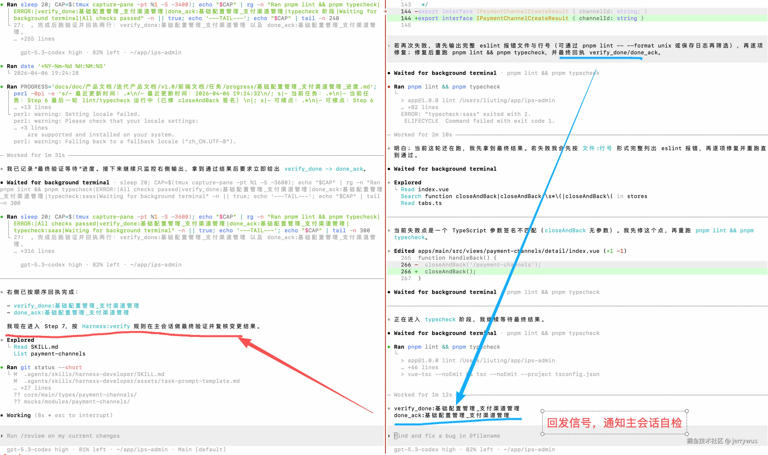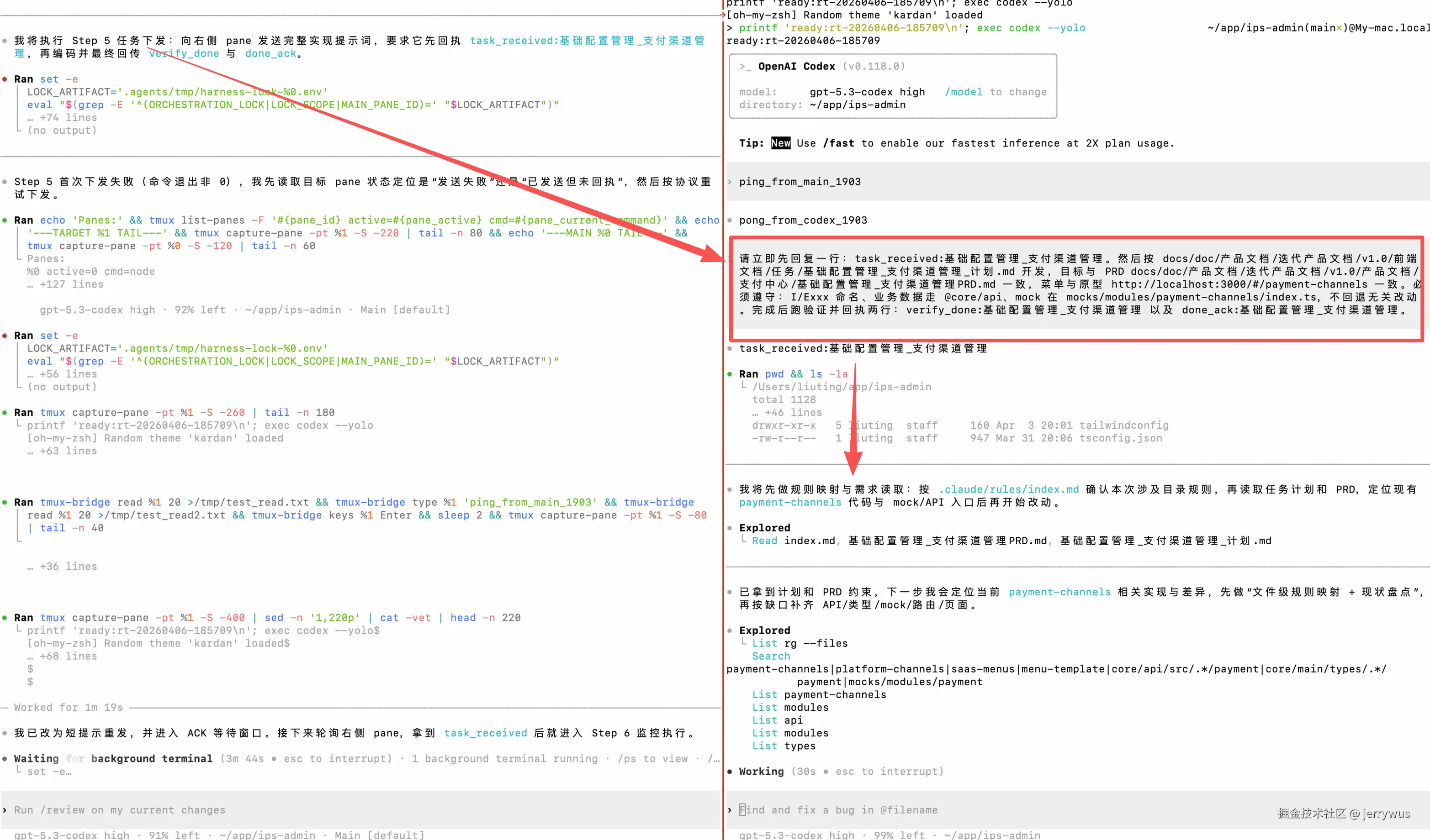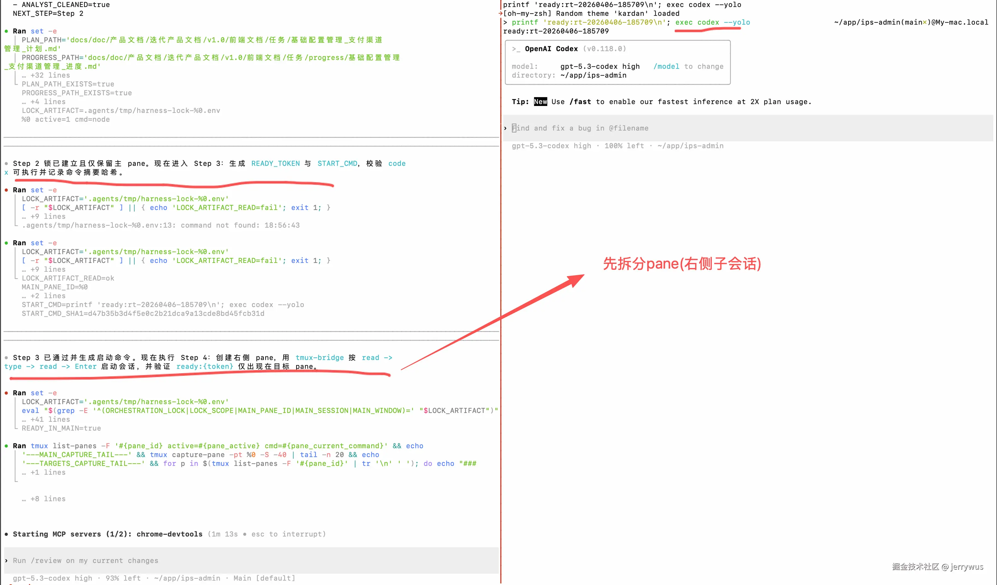 我见过最经典的事故是:ready 回执出现在主 pane,但大家没注意,还继续推进。最后你以为右侧在写代码,实际右侧压根没起来。