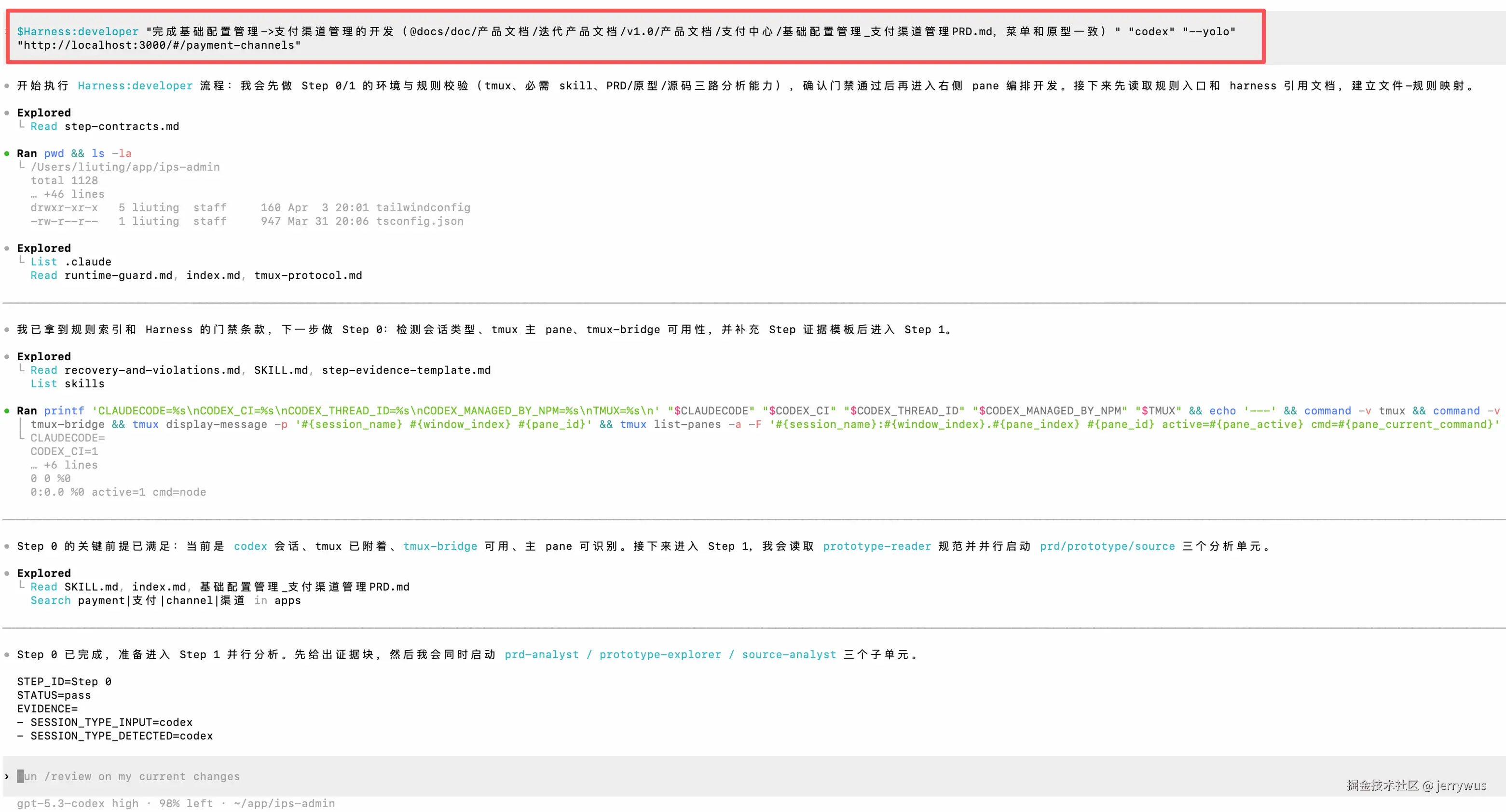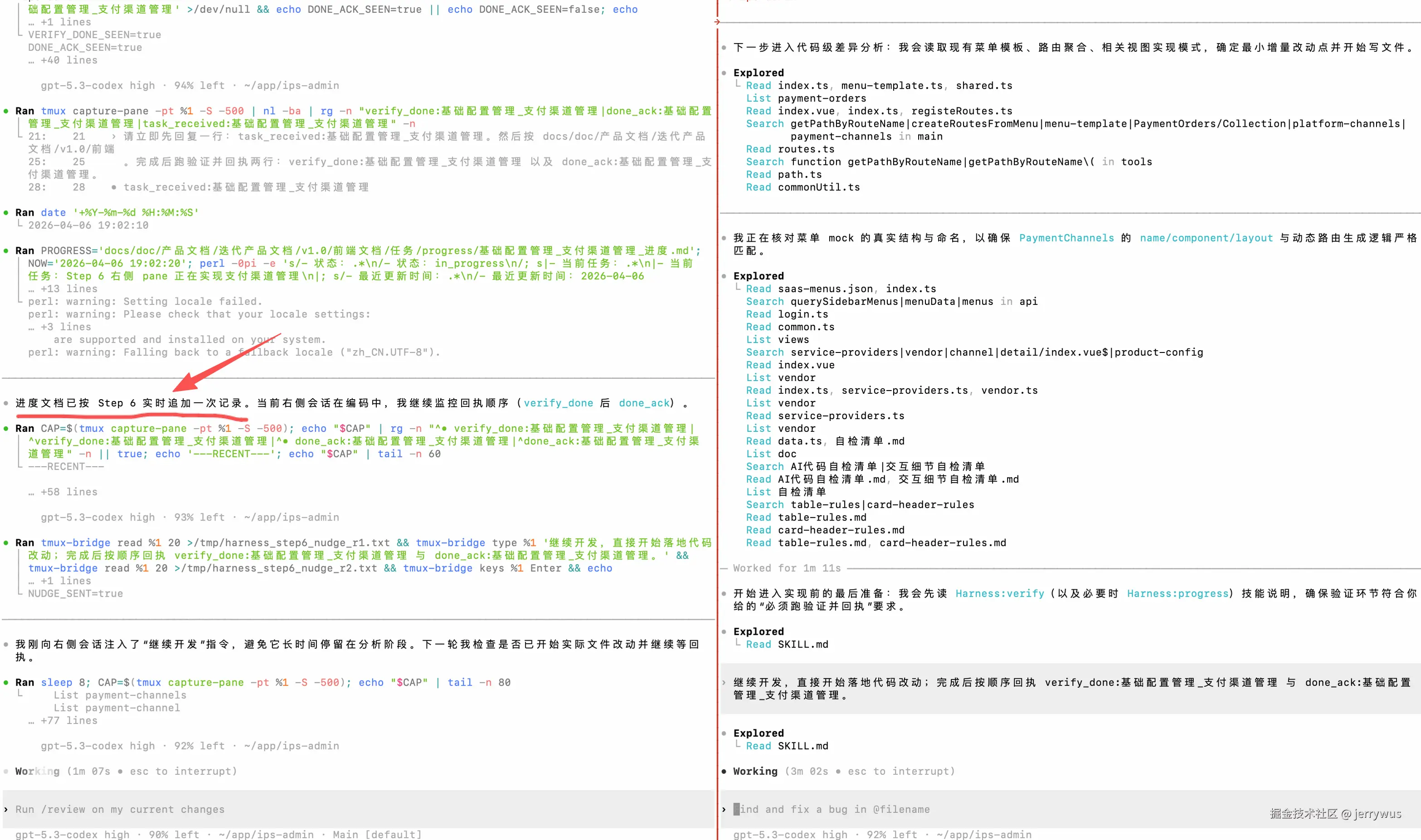 - Step 6:tmux+smux右侧创建pane,执行编码(主会话只监控,开发过程实时记录进度)