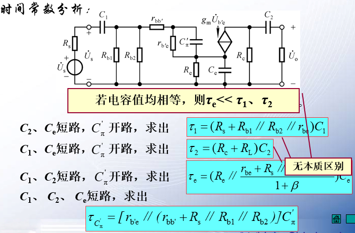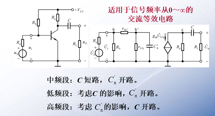 § 在高频段,随着信号频率逐渐升高,晶体管极间电容和分布电容、寄生电容等杂散电容的容抗减小,使动态信号损失,放大能力下降。