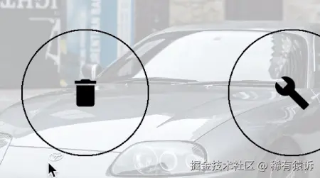 由于内部背景是透明的,我们需要解决图标重叠问题。一个快速的解决方案是隐藏下方按钮的图标,同时保持上方按钮的图标可见。