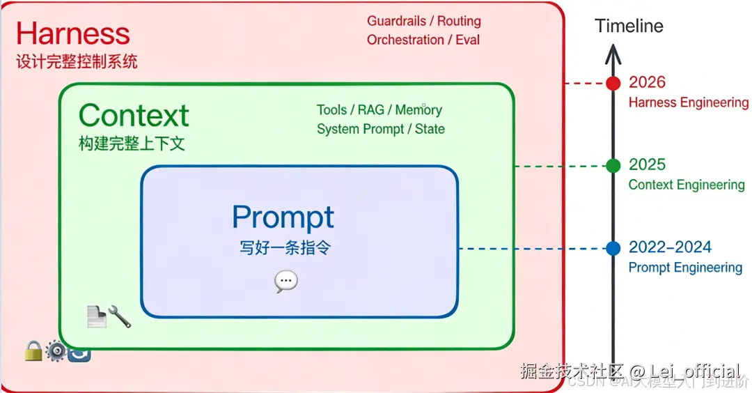 甚至,当前它的主流含义,早已远远超出最初提出时候的范围。现在业内对此的理解是:不去直接调用模型本身,而是去设计模型外部的一整层运行系统 ,包括工具、权限、执行流程、验证机制、日志、反馈回路、状态管理、安全约束,从而让 Agent 在更加可靠的工程环境里完成任务。