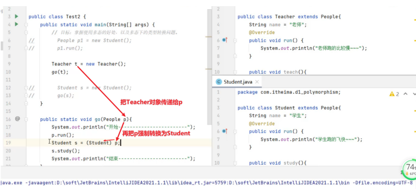 // Teacher t1 = (Teacher) p1; // 运行时: ClassCastException 类型转换异常