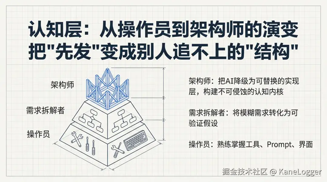 要把"先发"变成别人追不上的"结构",必须完成从"操作员"到"需求拆解者"再到"架构师"的渐进演变。