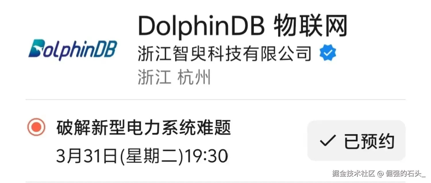 此外,DolphinDB 在负荷侧 的需求响应与可调负荷聚合运营场景、交易侧的电力交易结算与政策研究场景中也有不少落地实践。如果对这些应用案例感兴趣,想系统了解 DolphinDB 在不同电力场景下的技术实现思路,欢迎 DolphinDB 物联网直播间观看直播。