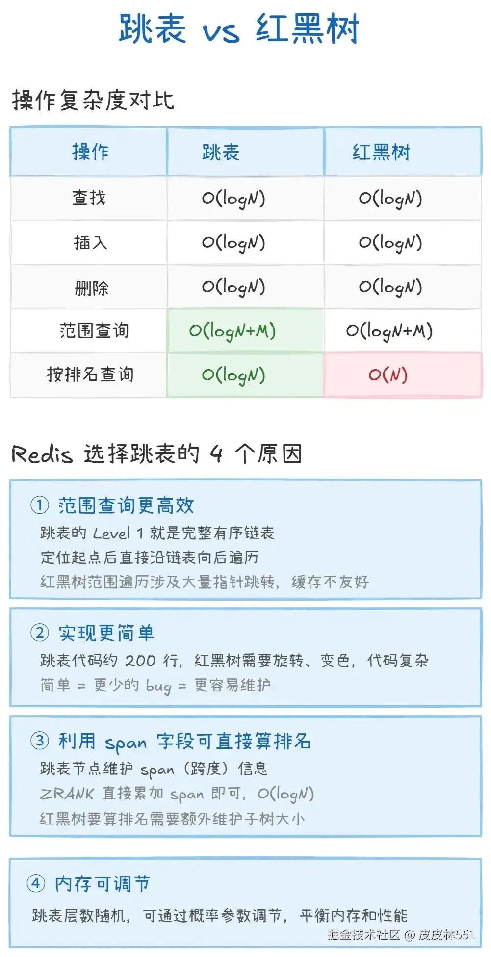 上图对比了跳表和红黑树的核心差异: