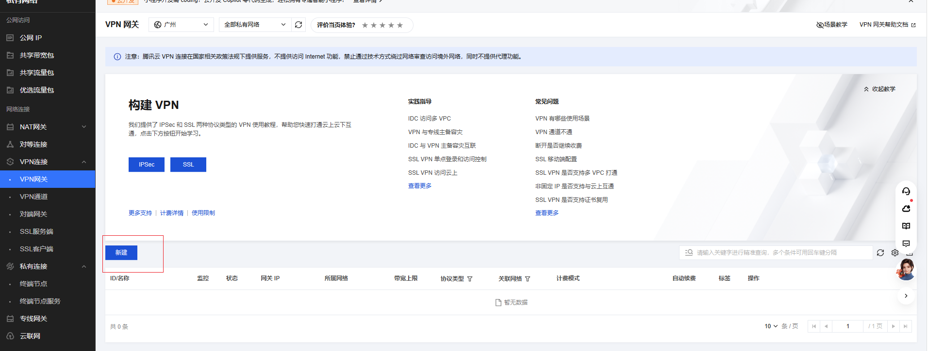 2.1 创建 SSL V P N 网关(规格按实际需求写)