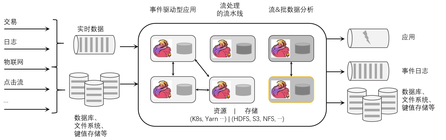 - 核心目标:是"数据流上的有状态计算"(Stateful Computations over Data Streams)。