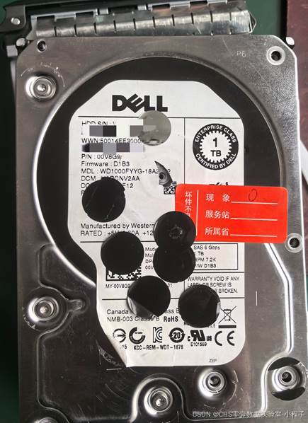 现在的情况只能先恢复1号盘了,否则数据肯定不对(图5),这种WD的SAS盘相对比较少,虽然盘片存在划伤的问题,但是希望还是很大的。直接清理盘片并更换磁头,当然备盘也很好找直接使用0号盘即可(图6)。然后镜像数据这个共计消耗了三天时间,最后1号盘的数据90%都镜像出来了。