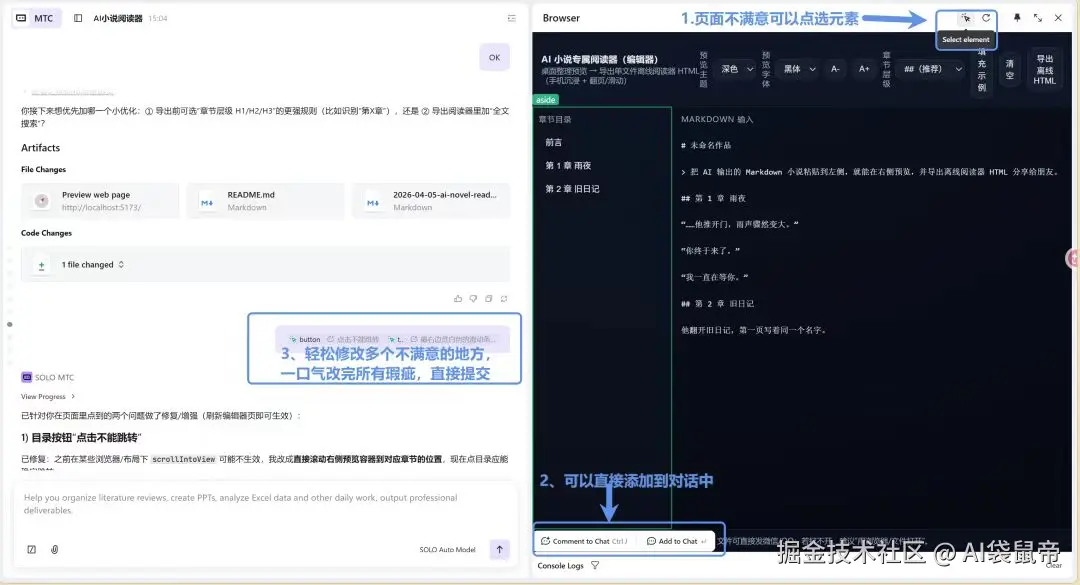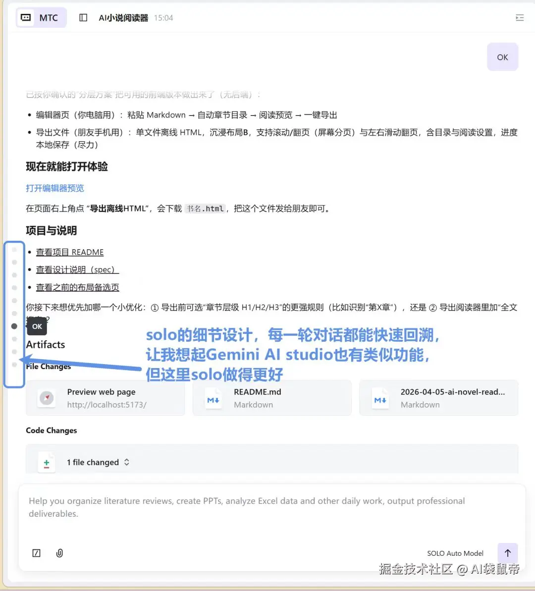 最终,它帮我做出了一个带章节目录、能滚动阅读的网页阅读器。