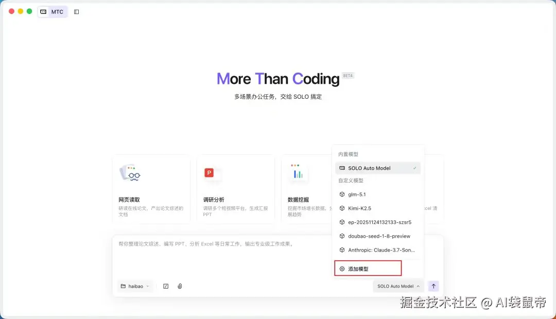 而且,它支持了双模式智能体(这应该是首创):MTC模式&Code模式,你可以根据任务类型随时切换。