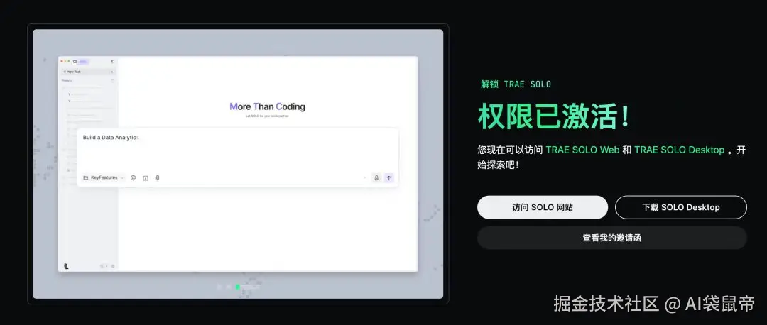 所以,看到Solo出了独立端,我特别兴奋,立马厚着脸皮跟Trae官方的朋友求了几个内测邀请码。