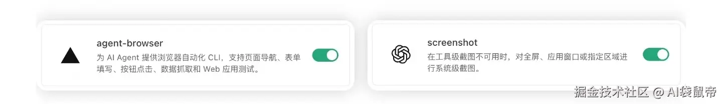 在逛Solo独立端的技能市场时,我发现它自带了一个浏览器操作的Skill,还有一个截图Skill。
