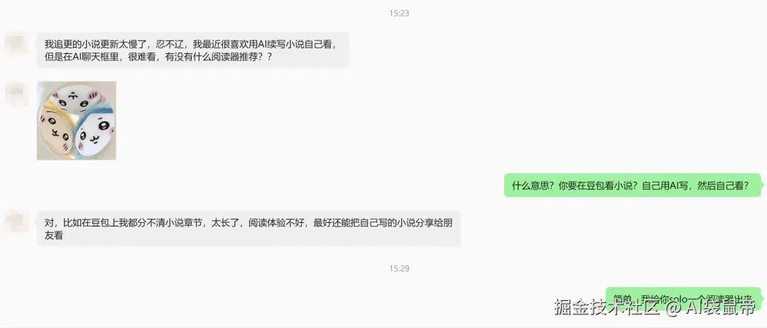 但他遇到一个痛点:豆包的聊天对话框,看不了那种动辄几万字的长篇小说,没有目录,没法翻页。