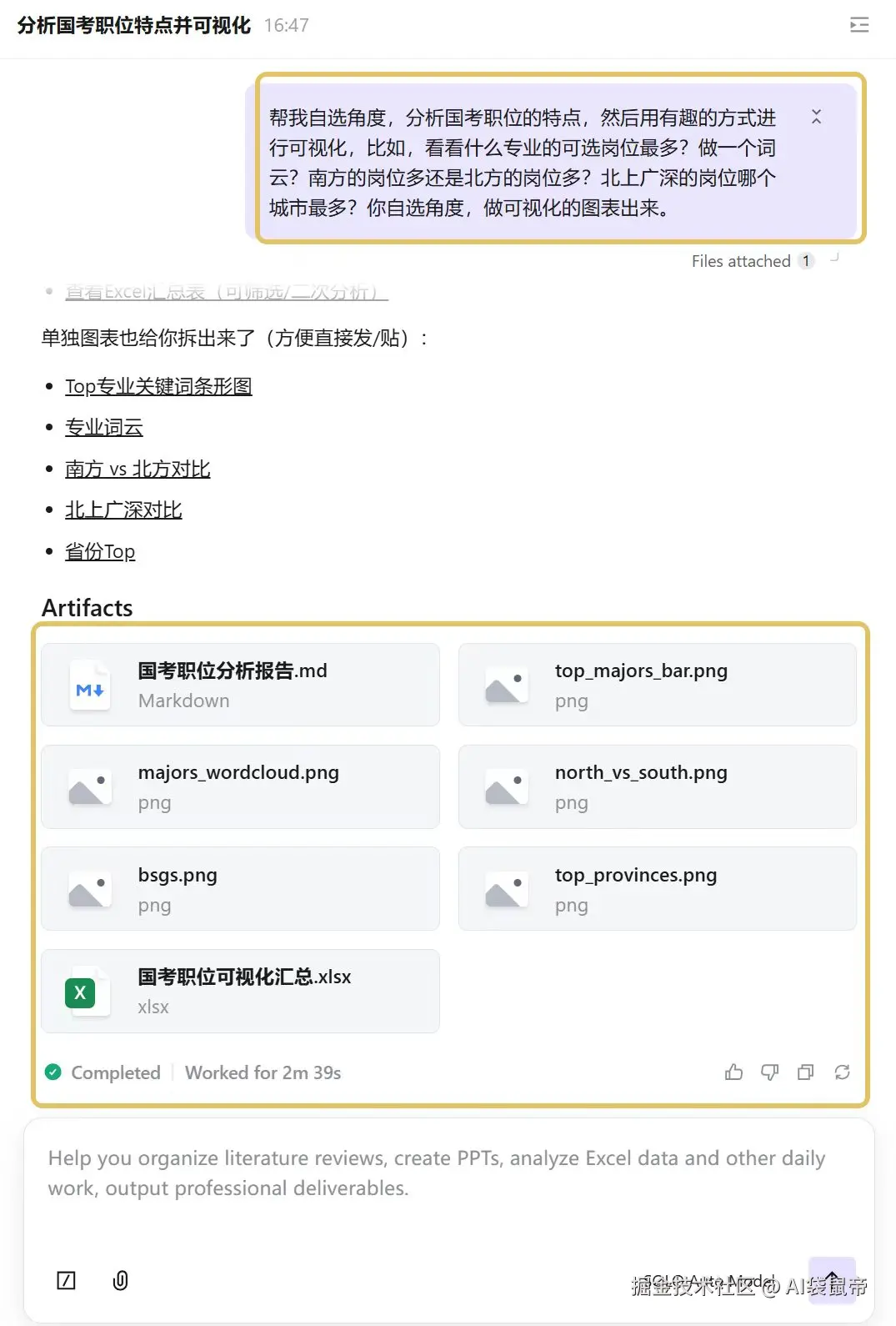 我觉得这还只是冰山一角。 如果我给它更多的指令,比如让它区分岗位是否仅限应届生,或者让它结合历年的进面分数线,测算一下哪个城市最好上岸,甚至导入各地的房价和GDP数据,让它算算哪个城市的公务员幸福感最高,它绝对能给出一份更硬核多维的深度研报。