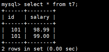 mysql> insert into t4 values(2);