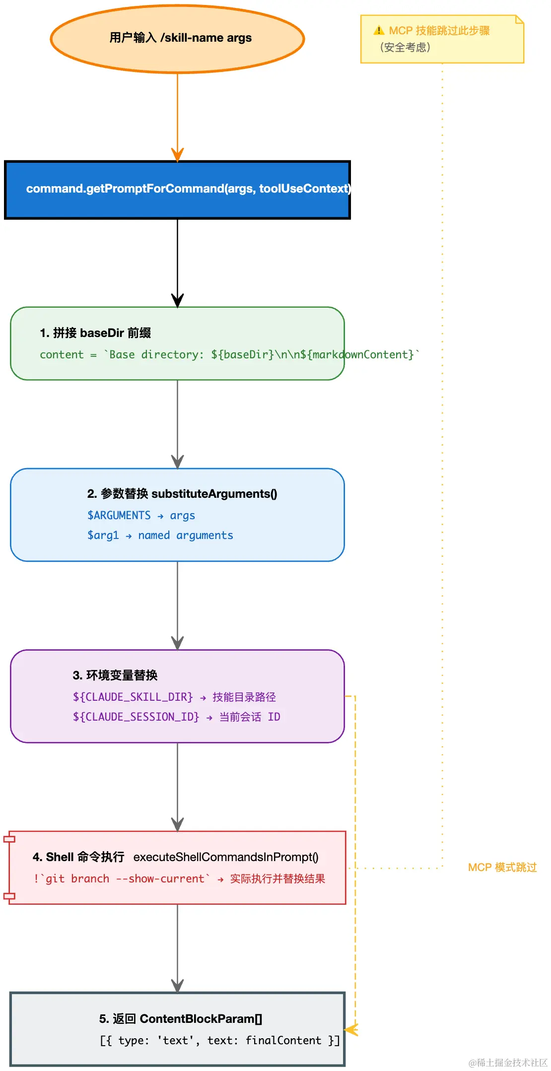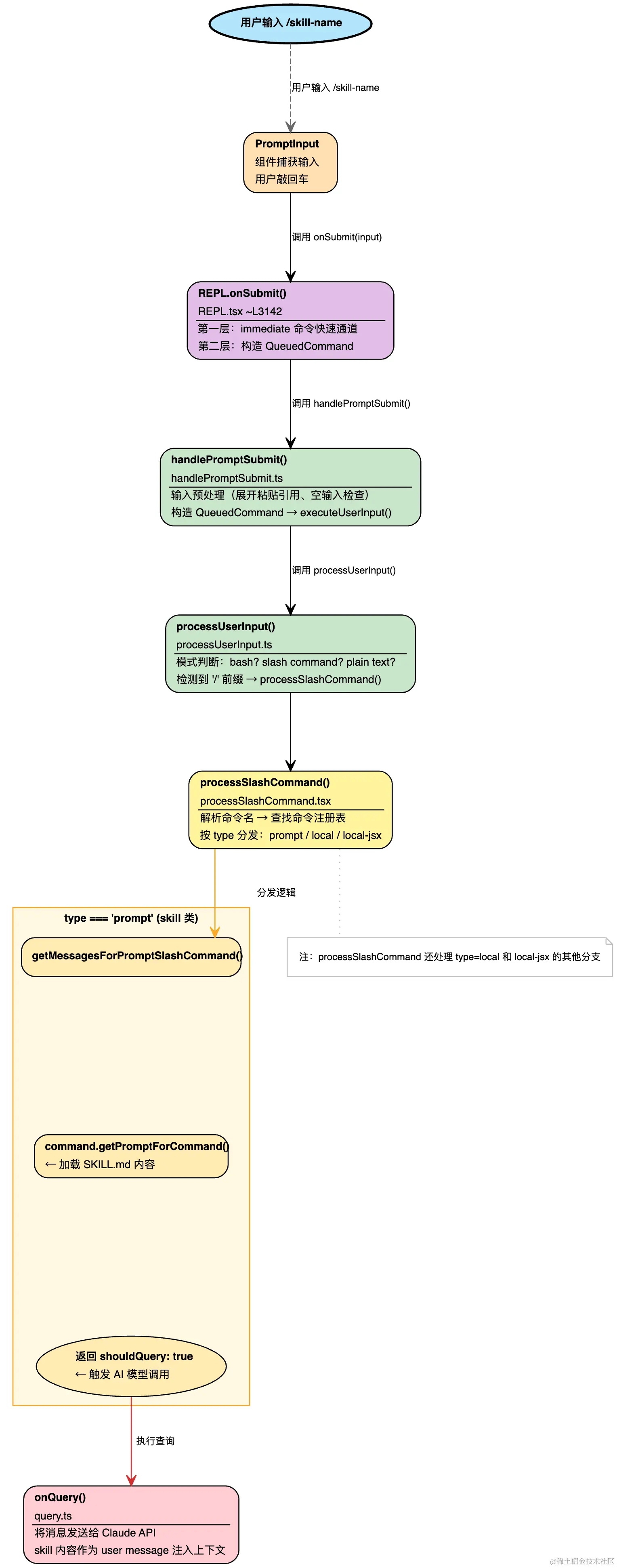 从代码看,Skill 的执行路径是单向的: