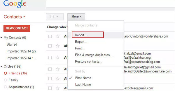 - 点击 "导入" 按钮,选择存储有联系人的文件。