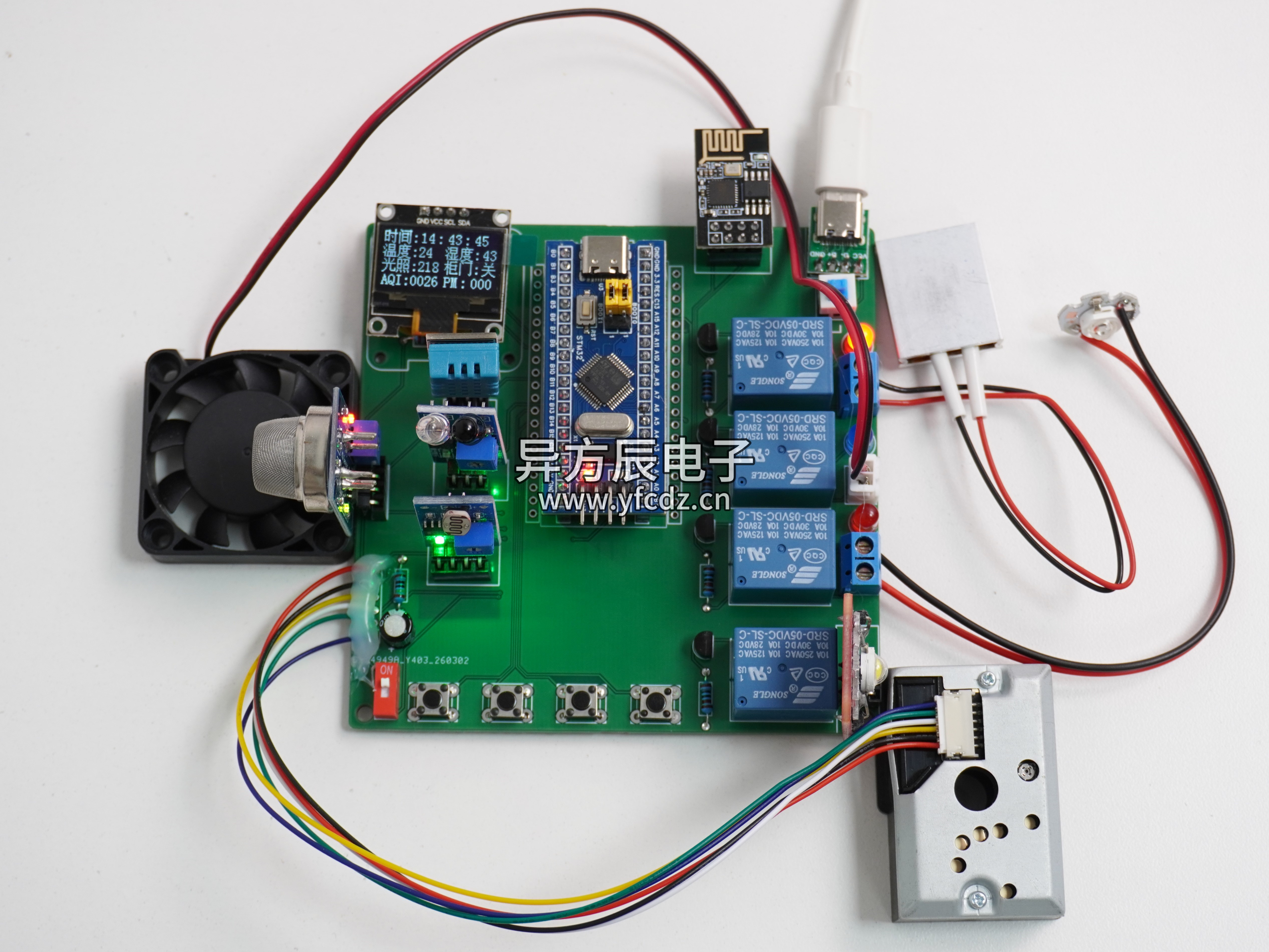 - MQ-135检测鞋柜空气质量,过高时启动通风并开启蜂鸣器报警