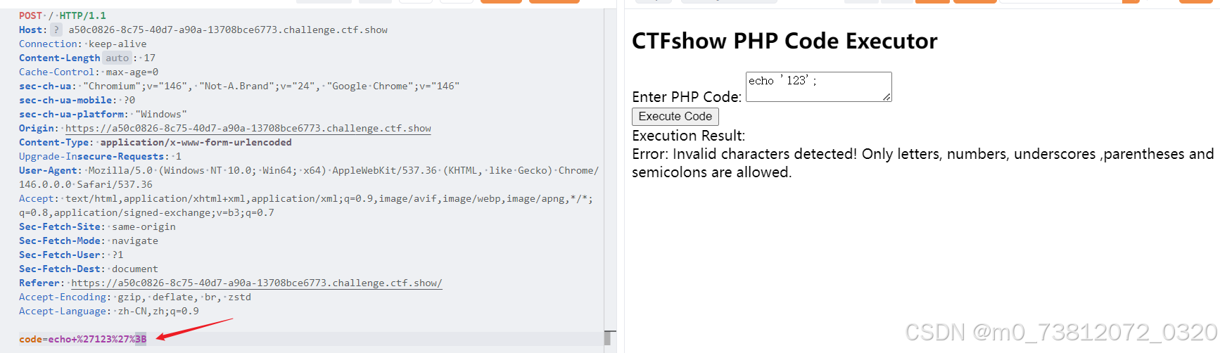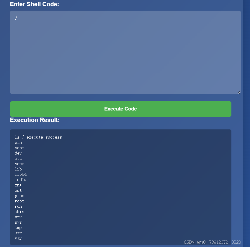 whoami以及报错回显可以看出,底层又变回了 Shell (Bash) 命令行执行 (类似于system("ls " . $_POST['code']);)。