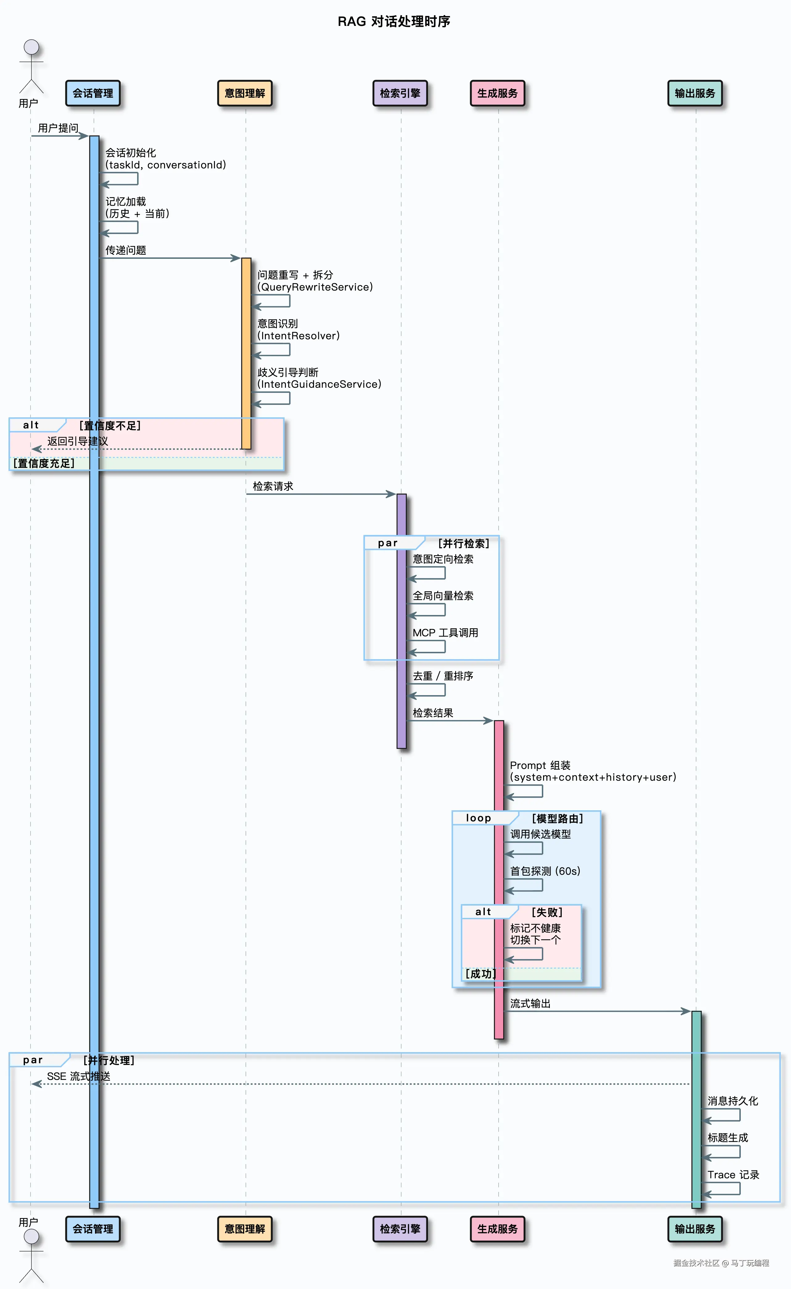 一次用户提问,在 Ragent 里经过的完整链路如下: