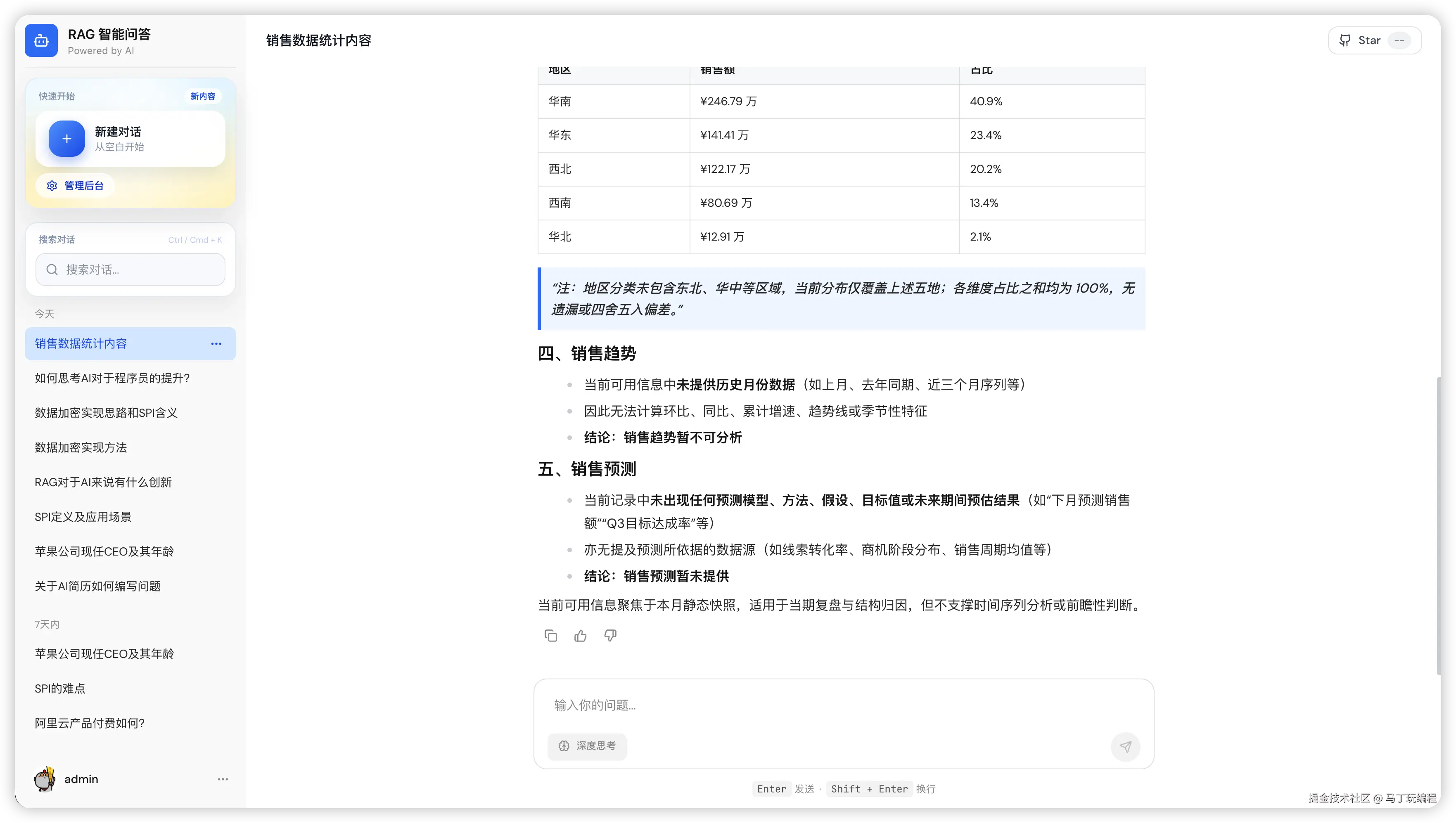 输入框下方提供示例问题标签,用户点击即可自动填充问题,方便快速体验系统能力。