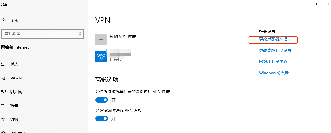 在【更改适配性选项】中,找到你的虚拟专网连接,右键属性,勾选【允许使用这些协议】。配置好后再连接。