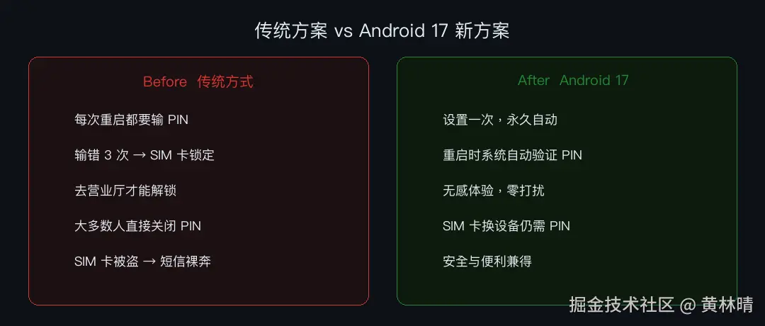 每次手机重启,都要输一遍 SIM 卡 PIN 码。嫌烦?大多数人干脆关了它。但 Android 17 给了一个两全其美的方案。
