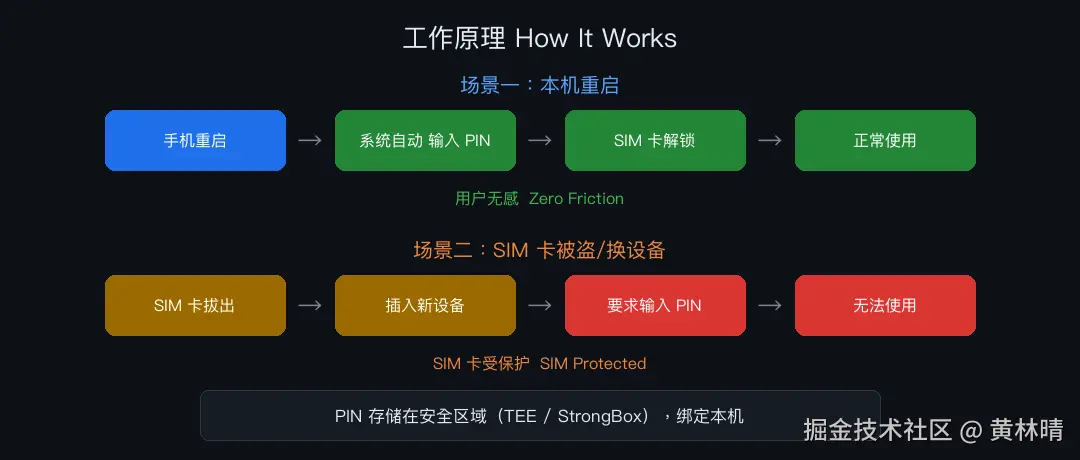 问题在于,传统的 SIM PIN 体验太差了。每次重启手机都要输一遍,输错三次直接锁卡,还得去营业厅解锁。于是绝大多数用户选择了关闭 PIN 码。