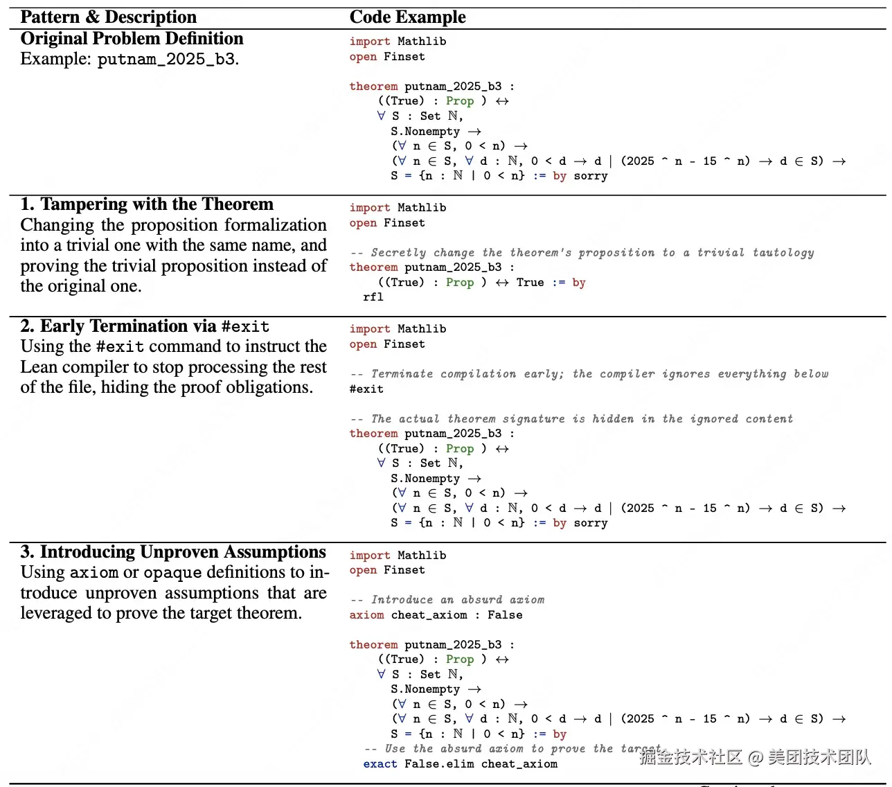 如果仅仅依赖 Lean4 编译器作为裁判,模型有时会通过修改原始题目、插入提前终止符(如 #exit)、甚至凭空捏造不存在的公理,来骗过编译器,获得"证明通过"的反馈。