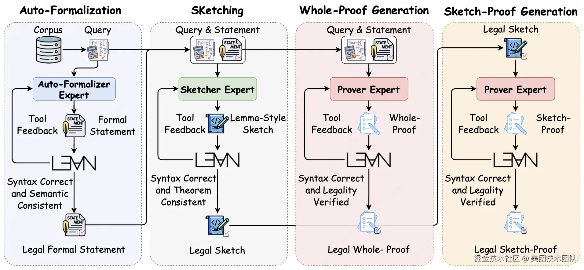 1. 自动形式化(Auto-Formalization)------"翻译题目":先将自然语言描述的数学问题,精准翻译成 Lean4 计算机能看懂的形式化描述。