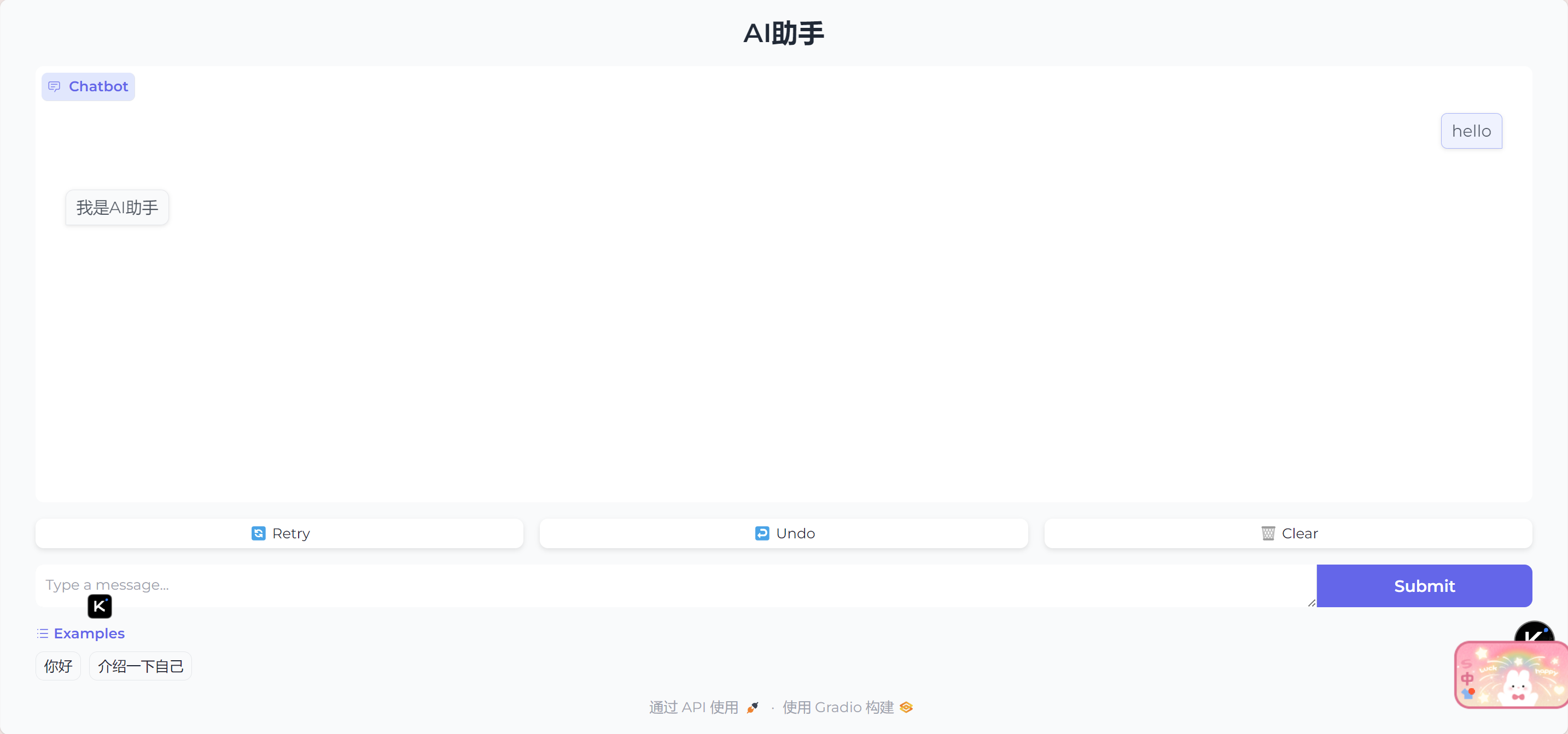 examples=["你好", "介绍一下自己"],