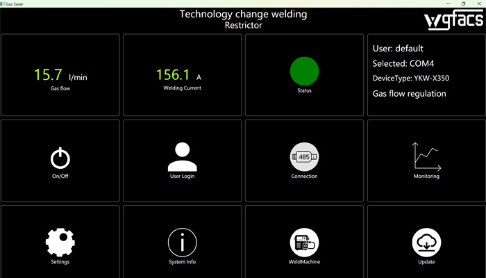 WGFACS节气设备与发那科机器人栏杆焊接系统的深度适配,核心在于构建了"参数实时交互---工况精准识别---流量动态调控"的闭环系统。WGFACS设备通过适配选型接入发那科机器人控制系统,可实时捕获焊接电流、电压、送丝速度、焊枪姿态及程序运行阶段等核心参数,数据传输延迟控制在毫秒级,确保对焊接过程的实时响应。设备内置的发那科机器人栏杆焊接专属数据库,集成了不同管材规格、壁厚、焊缝类型的供气参数模板,能精准识别起弧、稳弧、收弧、工位跳转等关键作业节点。针对栏杆焊接常用的富氩混合气特性,设备优化了流量调节的响应曲线,使保护气供给从"恒定输出"升级为"随焊适配",为发那科机器人栏杆焊接的高效节气奠定技术基础。