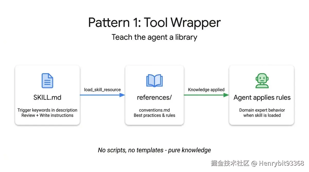 SKILL.md 本身就是结构化的领域知识文档,当 Query 命中时,将专业上下文直接注入模型,让通用模型具备垂直领域的专家能力。