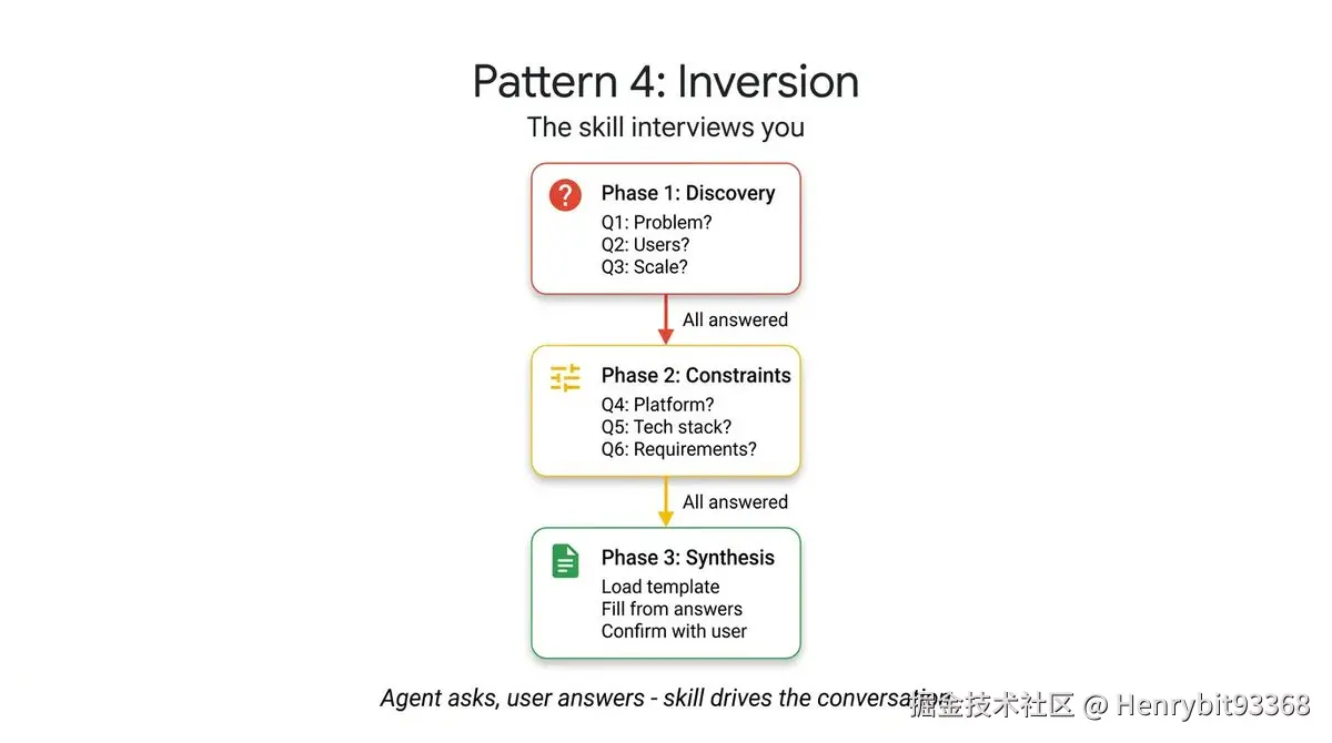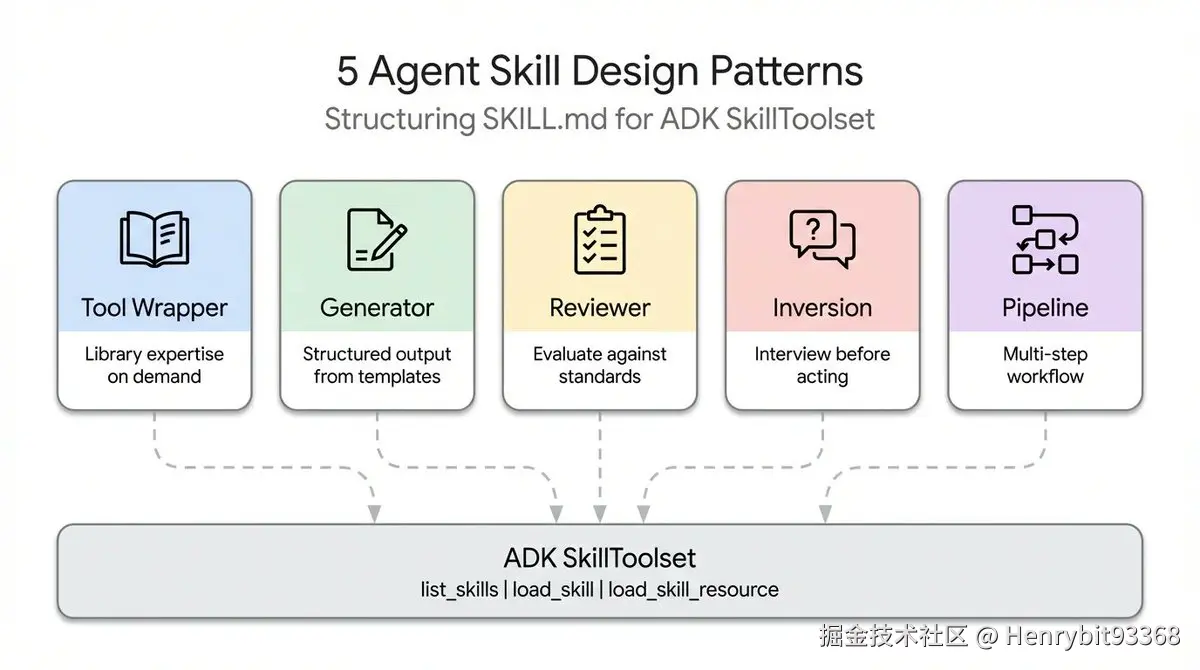 五个"设计规范"至此形成完整体系:Tool Wrapper 管单点规范,Generator 管结构生成,Reviewer 管质量评判,Inversion 管需求澄清,Pipeline 管复杂流程编排------覆盖了 AI Agent 在实际工程场景中面临的所有典型任务形态。