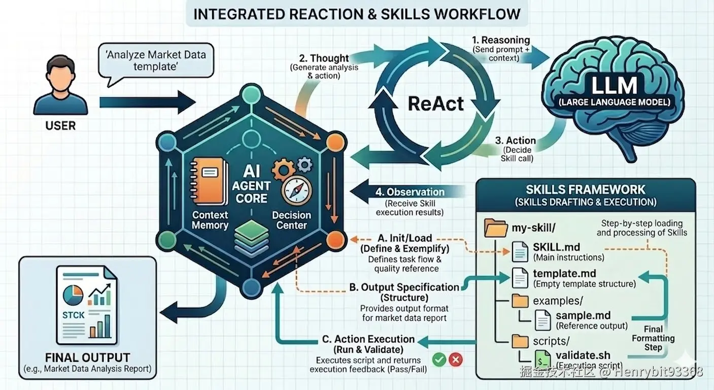 Skill 可以携带可执行脚本,Agent 捕获模型的执行意图后,真正在系统层面运行命令,实现从"说"到"做"的跨越。