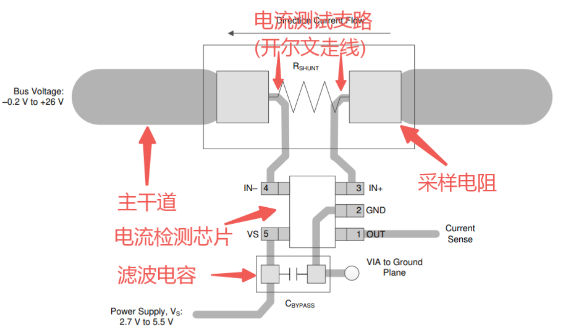 - 采样电阻到电流检测芯片的布线长度应尽可能近,以减少测量误差;