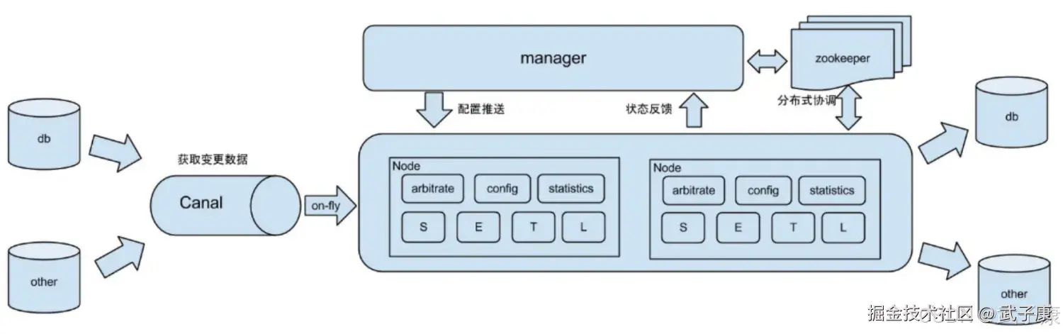 - 数据处理:Canal 会将捕获到的变更数据通过数据解析处理,然后根据配置和需求将数据同步到下游系统(例如消息队列、缓存、搜索引擎、数据仓库等)。