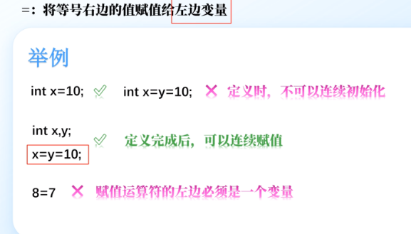 正确示例:int x,y;x=y=10;