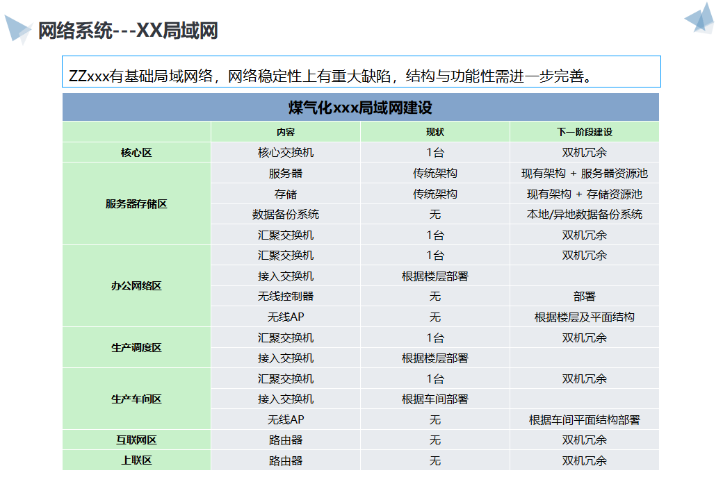- 办公/生产区:严格划分,通过核心交换机互联。